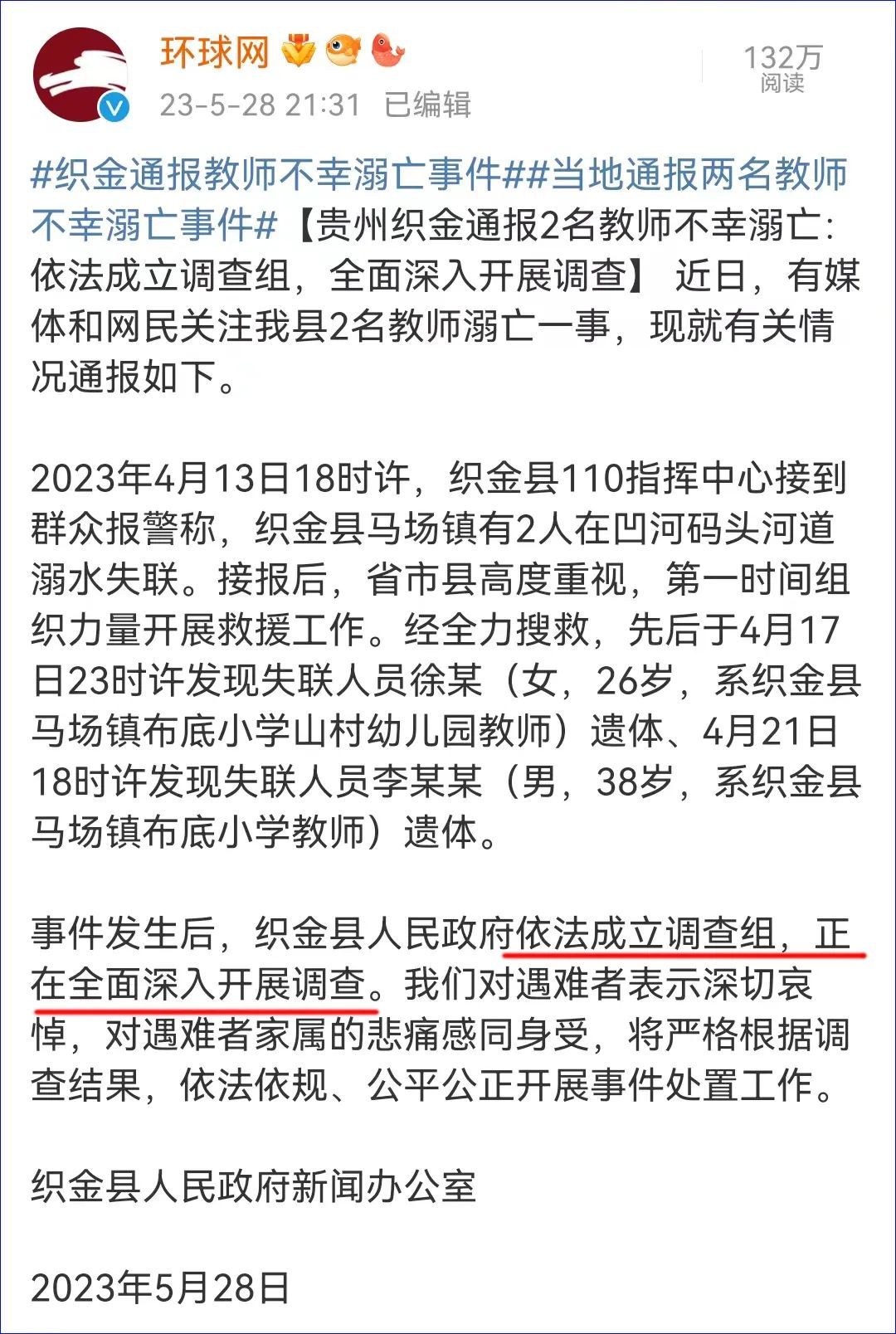 5月28日,织金当地发布通报,称已经依法成立调查组,正在全面深入开展调查。