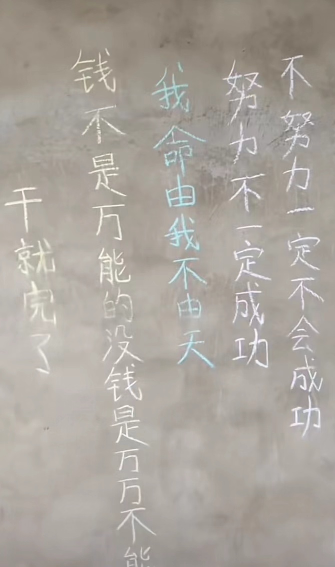黄中原直播的屋子墙上,写满了口号。