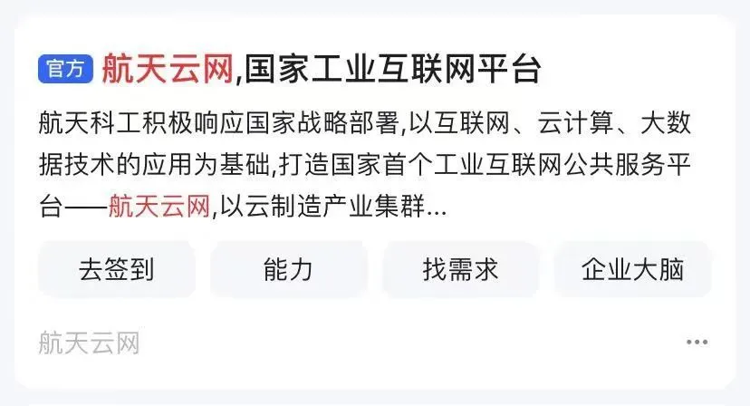 航天云网则是由航天科工集团孵化的工业互联网企业,他家官网自称是【国家工业互联网平台】,没办法,人家就是有这个身份和底气。