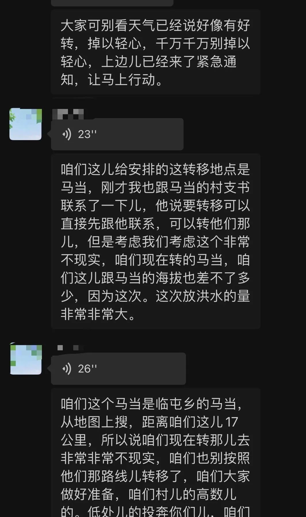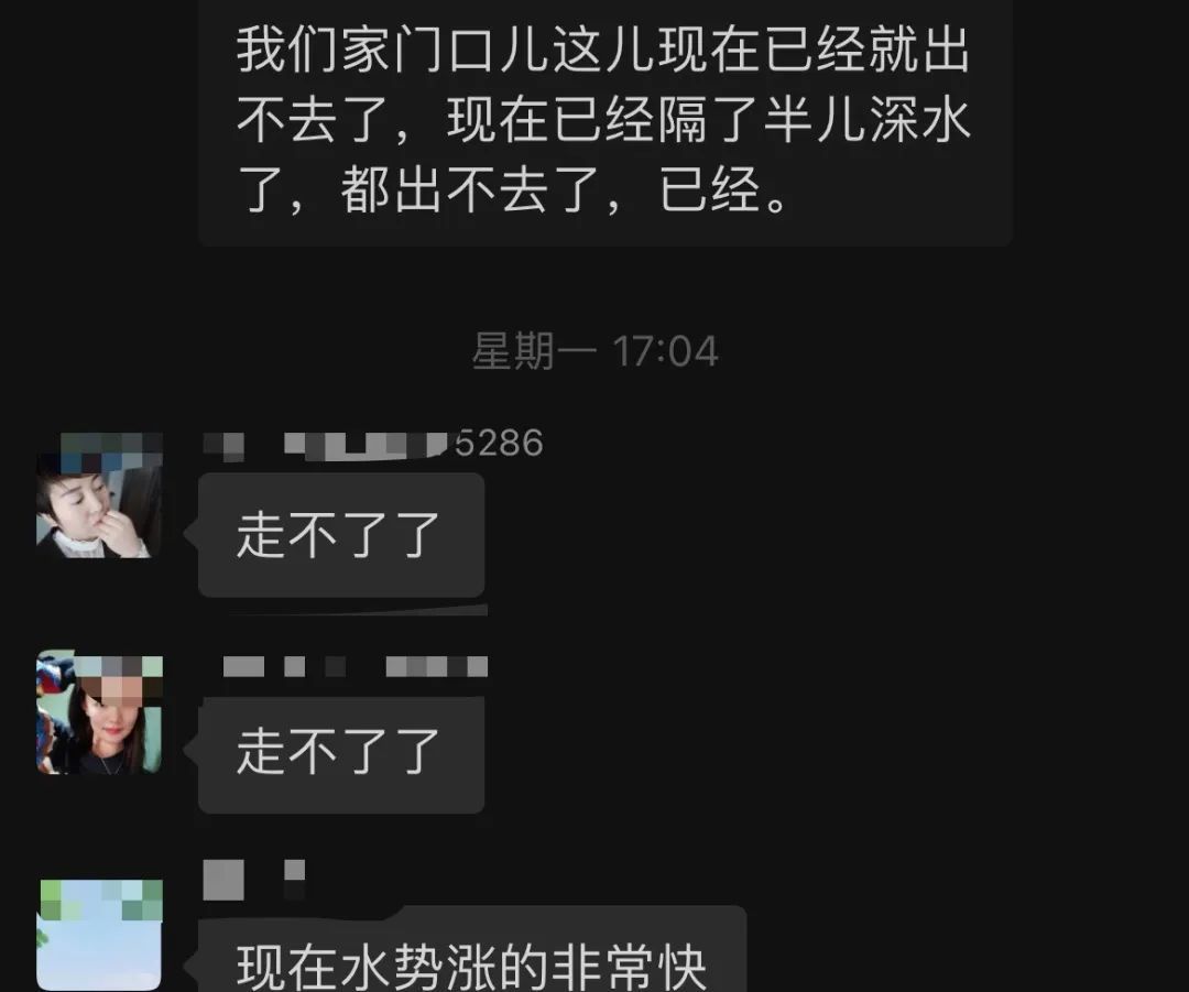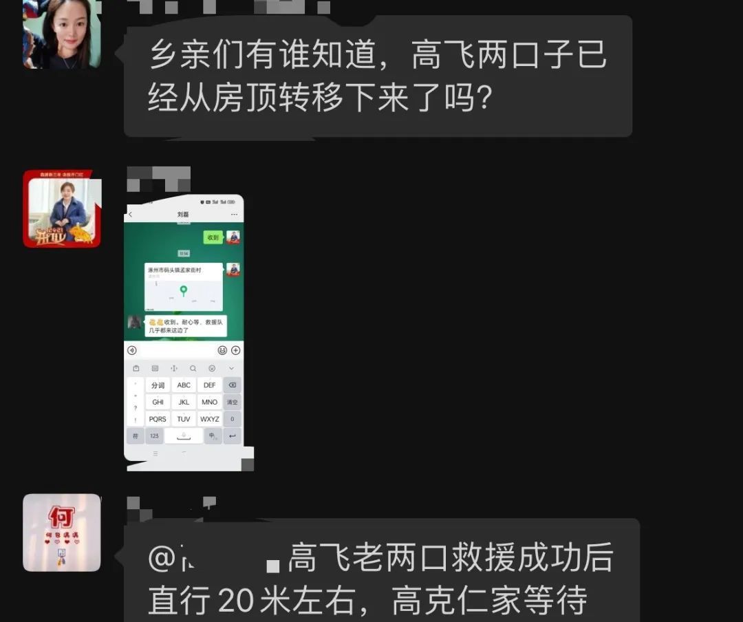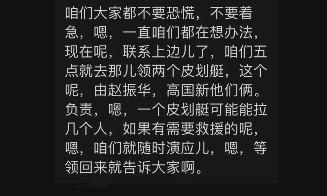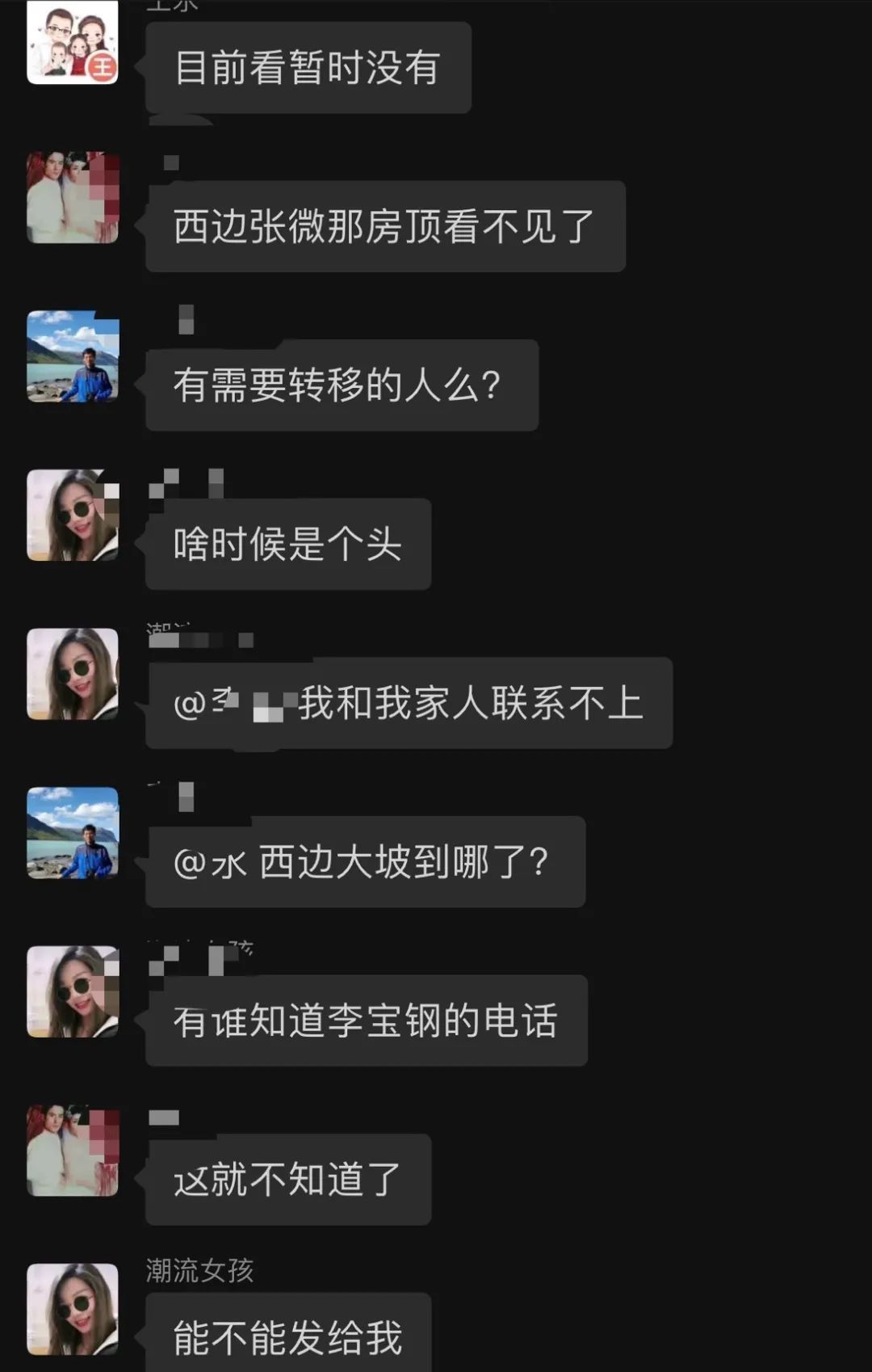 一点左右,有人反映洪水渐渐退去。此时,村内仅有少数几台手机可以对外联系,大部分群里活跃的人都是人在外地、打探家人的村民。