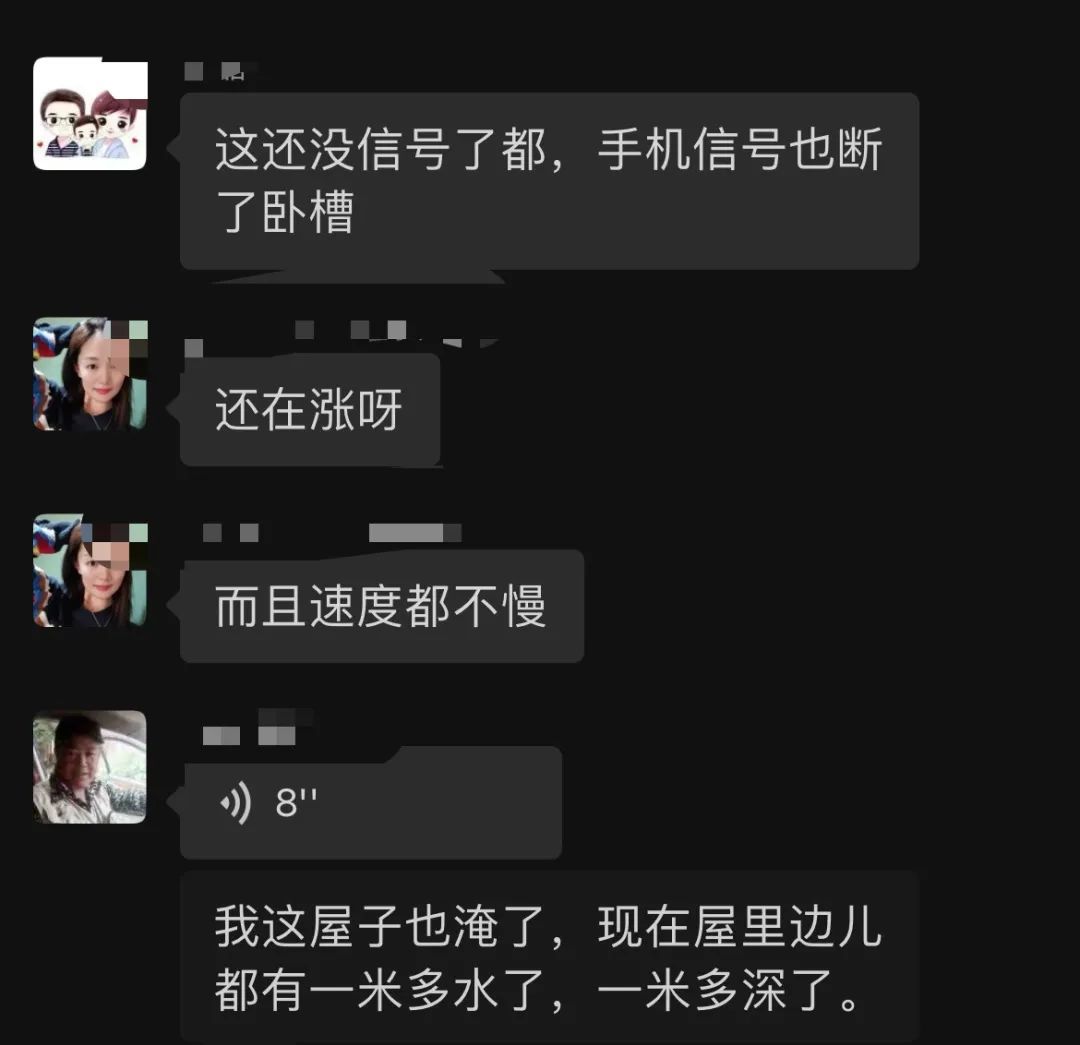 8月1日早上5点开始,越来越多的村民开始反映手机信号问题,很多在外打工的人联系不上家内老幼,开始陆续拜托同村人转达平安。同时洪水还在上涨,流速也很快,村内地势低洼的地带洪水已经迅速淹没屋顶。