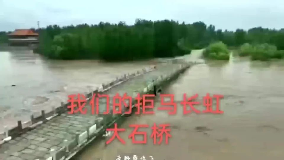 马伟给南方周末记者发来的一条航拍视频显示,河岸周边的小区已是一片泽国,被誉为涿州八景之一的“拒马长虹”永济桥(俗称大石桥),只能勉强与水面持平,成了“栈道”。