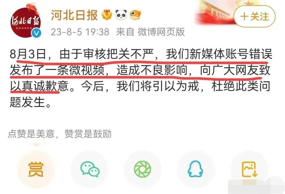 河北日报弄错了,河北共青团也跟着出错,导致官媒形象在公众面前栽了跟头。