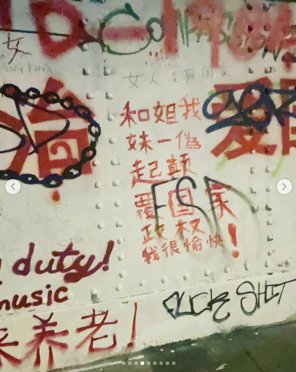 ddyykk2010:我头回见”没有政治立场”的人在墙上刷政治标语。