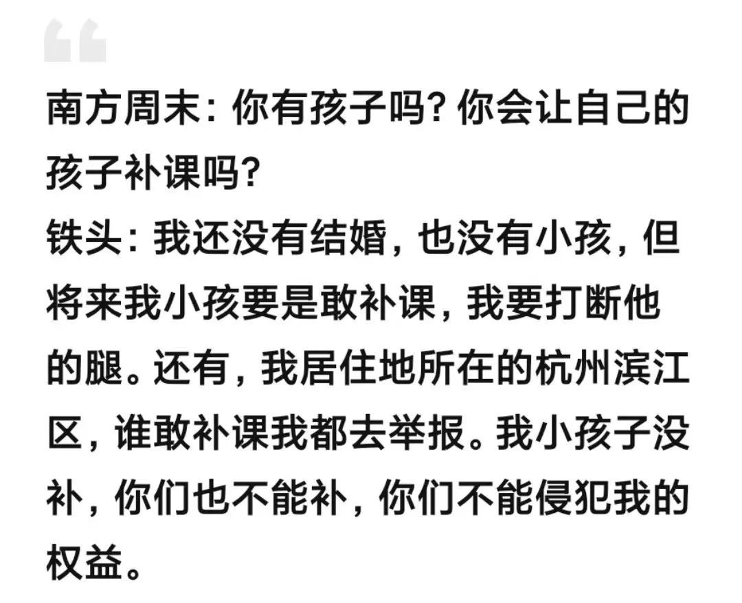 然而,无论是孩子需要,还是教培机构员工要养家,这些能触动“铁头”吗?我想是不能的。