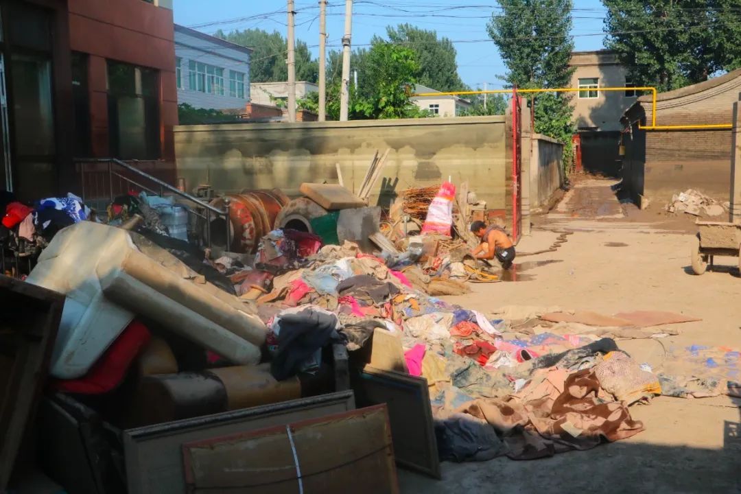 大柳村向北4公里多,从北辛庄户村入口牌坊处起,村民家里清出来的垃圾堆成垄,绵延了近百米。沙发、床垫、桌子、柜子……那曾是每户人家的必备品,因为被洪水冲刷、浸泡,变为成堆的垃圾。