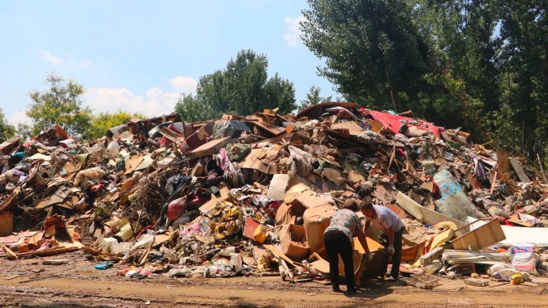 在这一大堆垃圾里,有王建德家的新马桶和其他各种装修材料。但“新”是洪水来前的说法,洪水过后,王建德家所有的新东西都躺在了垃圾堆中。