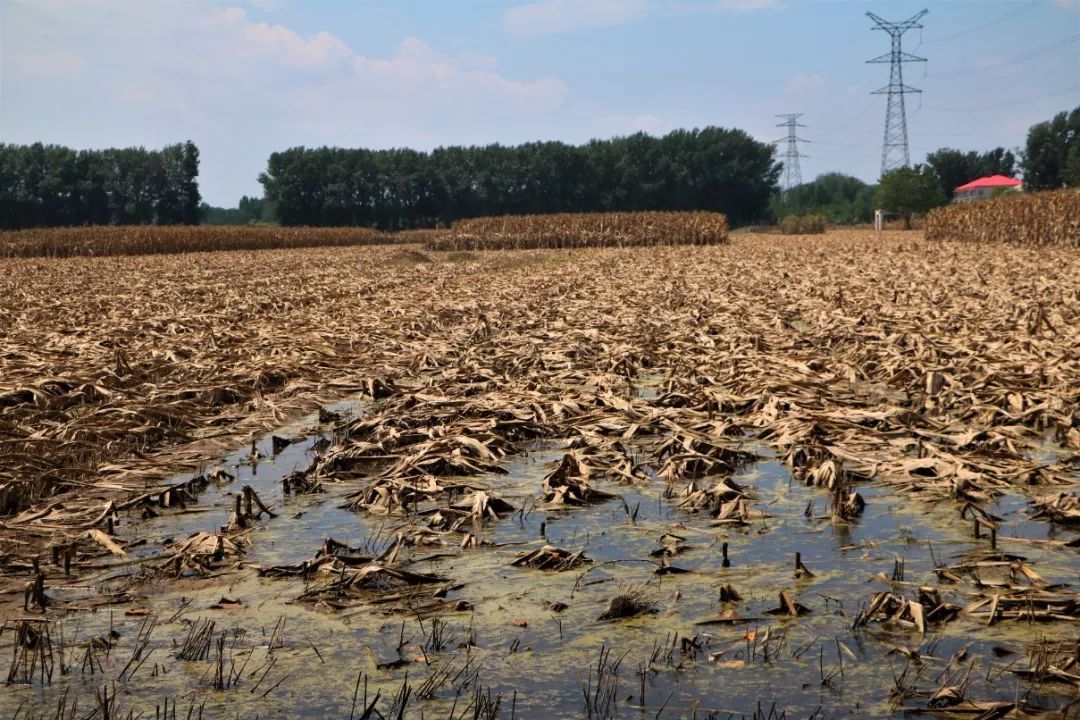 洪水漫过玉米地,原本绿色的玉米田变成枯死的黄/何国胜 摄