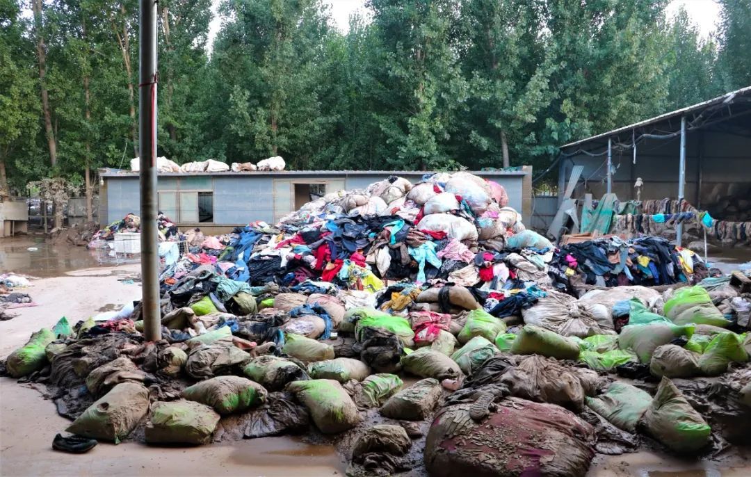8月13日,涿州市码头镇涿仝村,旧衣商人薛伟仓库中仍未清理的衣物/何国胜 摄