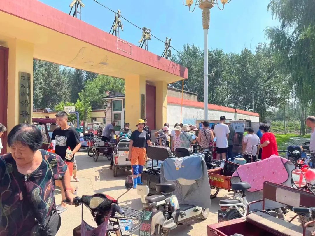 8月18日,涿州市刁窝镇沿鲁村,村民们正在从菠萝救援队净水器处接水/受访者供图