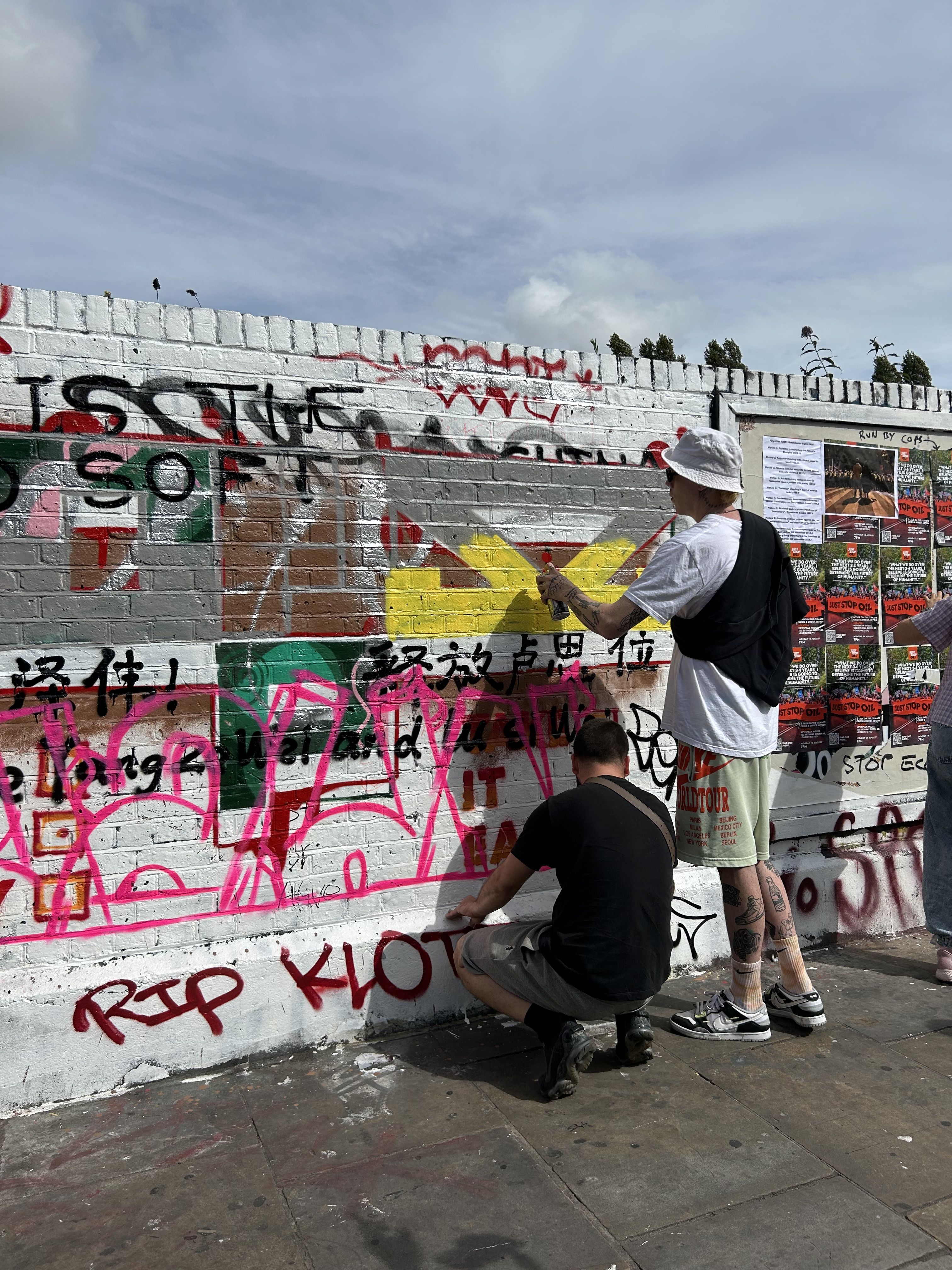 8月5日,英国东伦敦打卡热点、涂鸦圣地红砖巷(Brick Lane)主街E1 6SB有两面墙壁被人涂白,再以红字印上由中共倡导的“社会主义核心价值”。这次事件激起华人圈子极大反响,更引发出连串二次、三次创作抗争。过去中国曾有过“民主墙运动”,如今“墙内”、“墙外”也成了各种日常的隐喻,而这场发生在东伦敦墙上的“涂鸦战”,能否成为一幅长久的民主墙呢?
