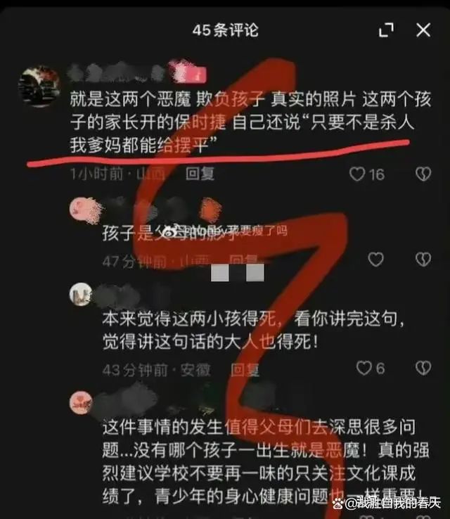 我坚决支持被欺凌学生的家长,穷尽所有手段为孩子维权,一定要让恶魔付出代价。如果不能为孩子讨个公道,父母枉为父母。