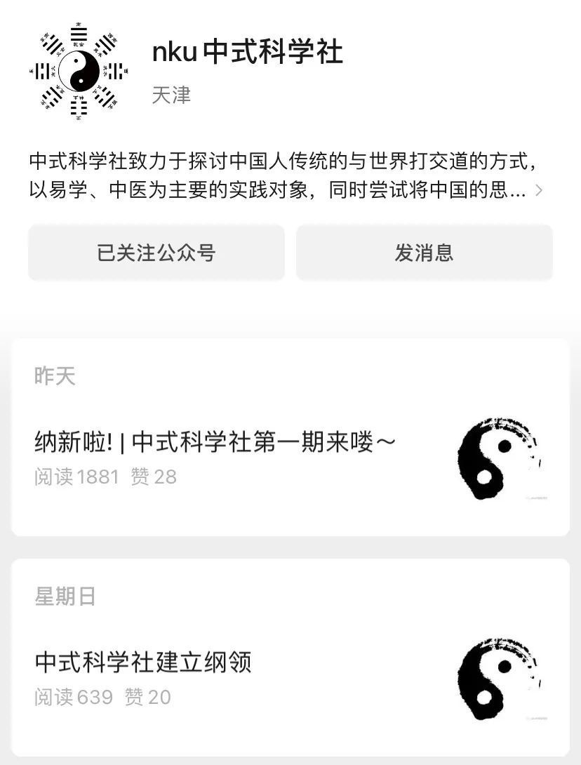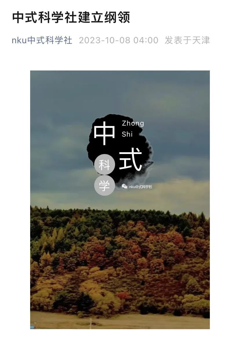 所谓中式科学,是指南开大学今年新成立的一个学生社团: