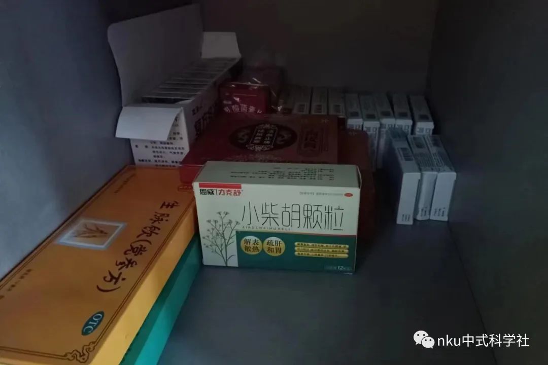 除了举办讲座,中式科学社还在学校里给同学们发放药品。