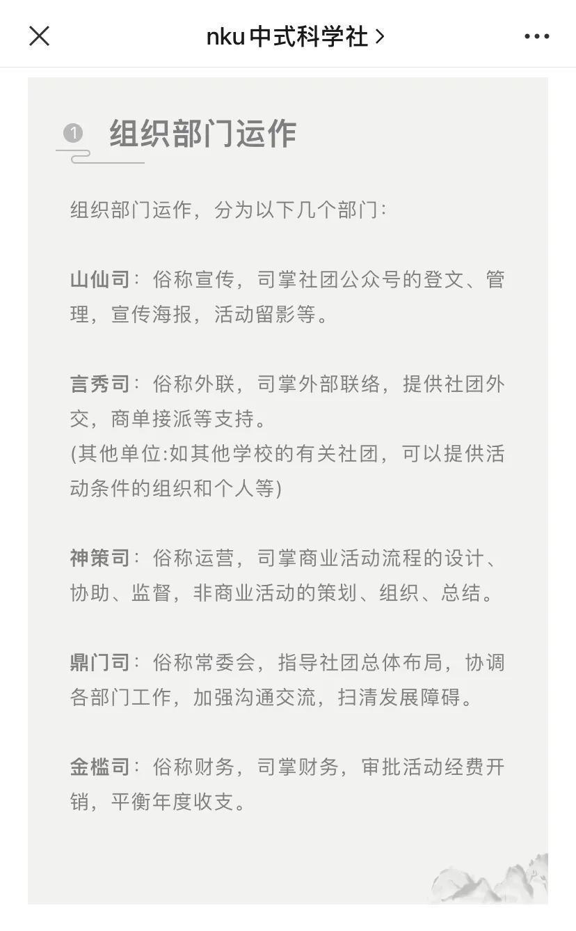 中式科学社的组织架构也有着鲜明的中国文化特色: