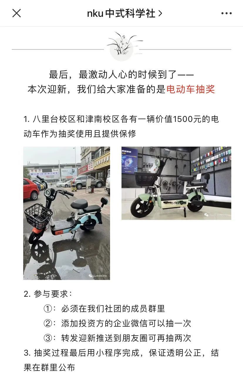 作为中式科学社,迎新抽奖的奖品怎么能是西式科学的电动车呢?!