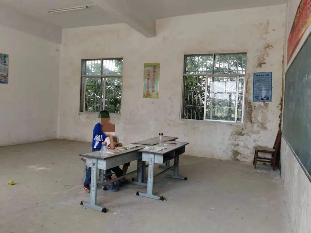 完全没法构成正常的教学秩序。一个老师带一两个学生是没办法正常上课的,小孩子需要正常的同辈群体,才能产生竞争、比较、互助的氛围,习得一些规范。讲教学知识,也完全跟不上,更何况还有智力障碍的学生。五个学生中,一位有精神残障,两位是贫困户,还有一位来自离异家庭,父母离婚之后外出务工,极少回家。