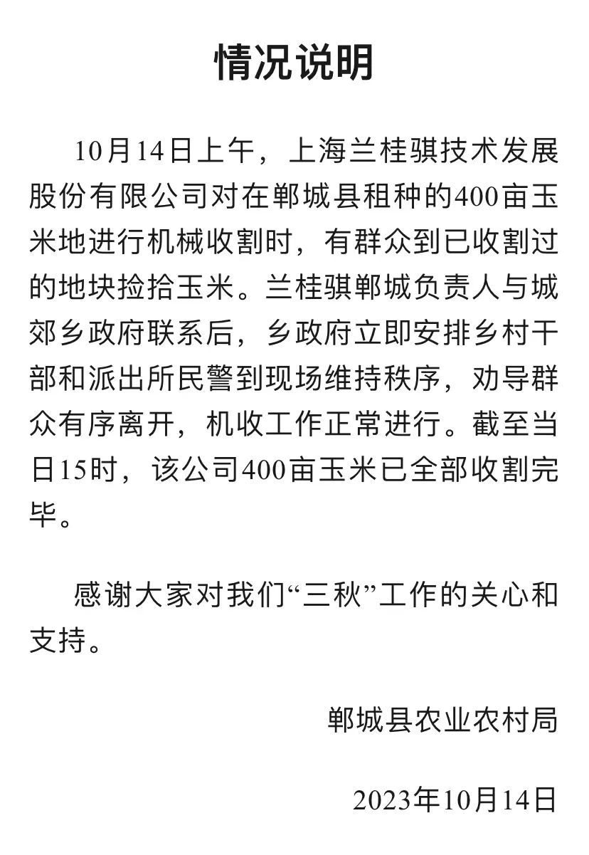 朋友发给我一个视频,10月14日,河南周口市郸城县,一玉米地遭百余人疯抢,民警到现场制止无果。
