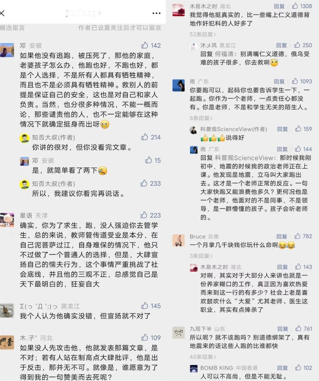 他有足够的自信在智力和道德上碾压那些批判者,“他们(网民)很蠢,他们纠结的还是跑不跑,骂的是我跑了。但更根本的问题,难道不是如何保护生命安全,难道不是建筑质量吗?”