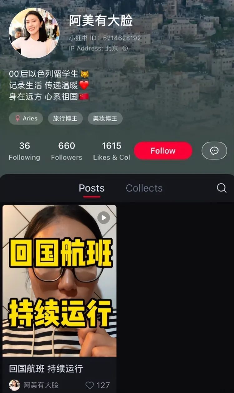 不过,很快这些充斥着浓郁正能量的视频就被真正身在以色列的留学生发现了造假痕迹,视频显示的IP压根就不在以色列而是在北京,这名博主也承认自己确实不在以色列。这还不算,更有在以色列的留学生透露,这名之前在耶路撒冷读书,如今已经回国的博主还曾私信很多同学,希望他们能够拍摄一些正能量视频。