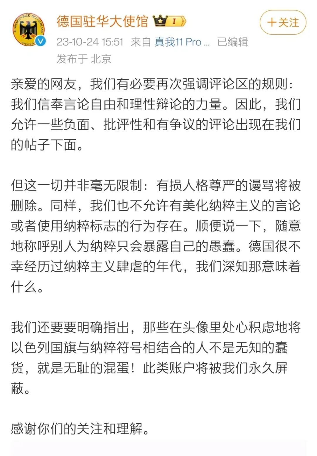 2023年10月24日德国驻华大使馆发布的微博,是一个节点事件。