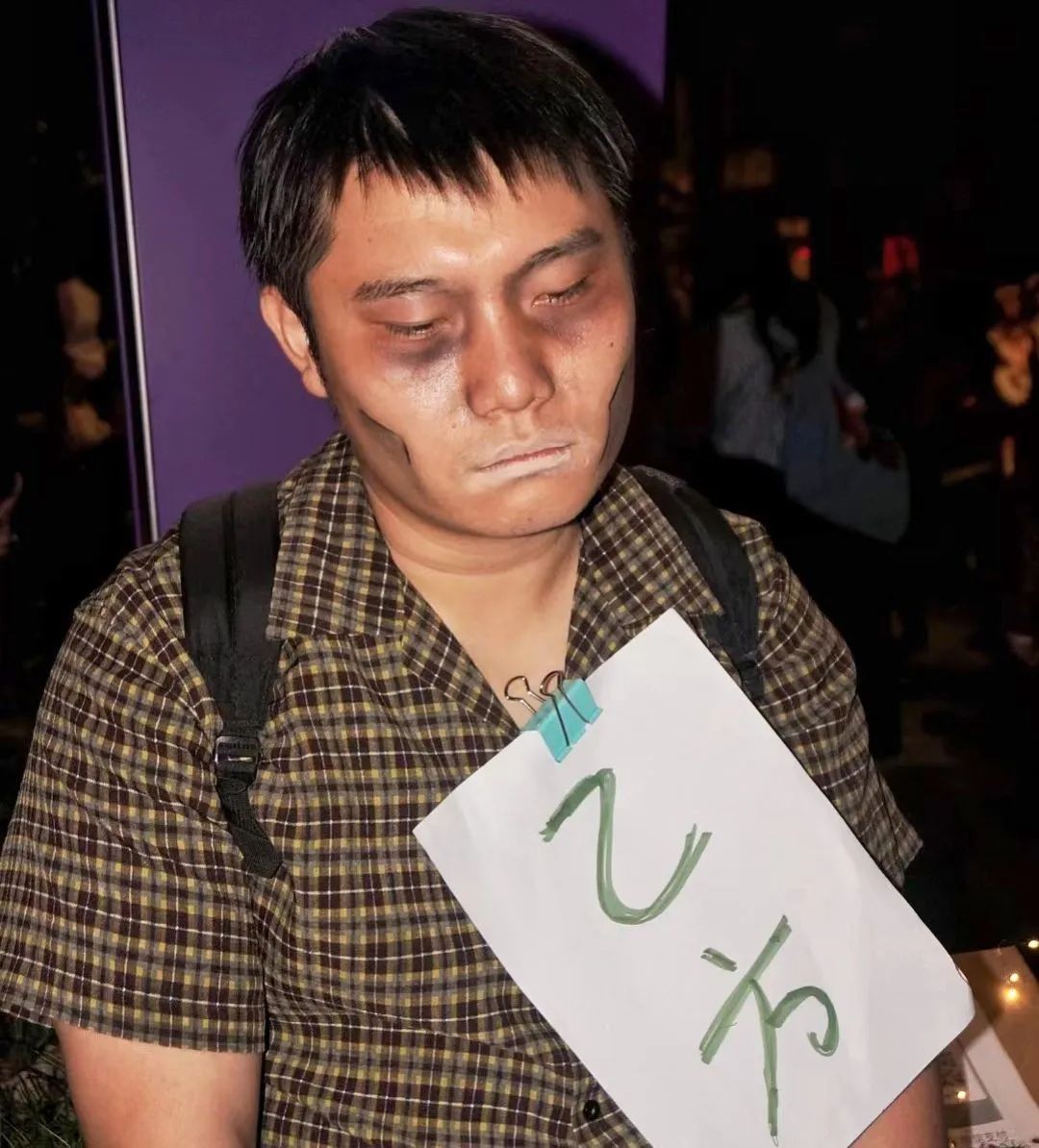 在这里,李秋白还遇到不少不用任何装扮的穷鬼,以及怨气深重的甲方,还有人高举牌子:“平时扮演自己就已经很辛苦的人万圣节什么都不用扮也是OK的。”李秋白将这类cos总结为:用现实主义的表达手法,呈现打工人最恐惧的事情。