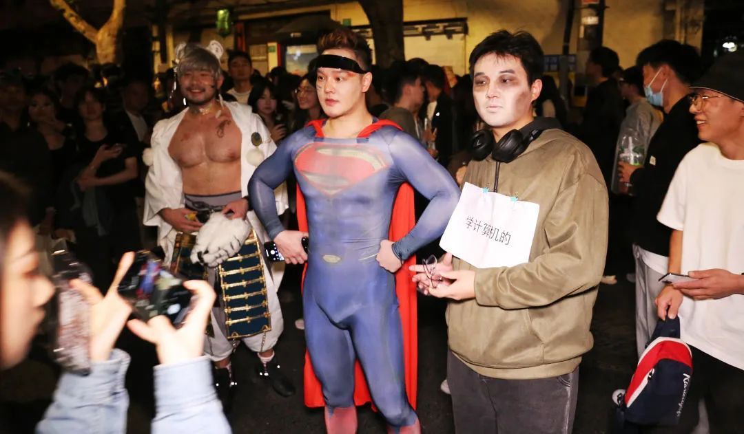 10月31日晚,不少coser称刚下班就过来了。一位纣王在公司化完一副庄重的戏剧脸谱,走街串巷地找两位素不相识的妲己组CP;一位28岁的年轻人专门从浙江省嘉兴市驱车赶来,她cos宫崎骏经典动画角色无脸男,弓着腰默默站在路边,前后有一百多个人围过来合影。因为第二天还要上班,她又连夜回嘉兴。