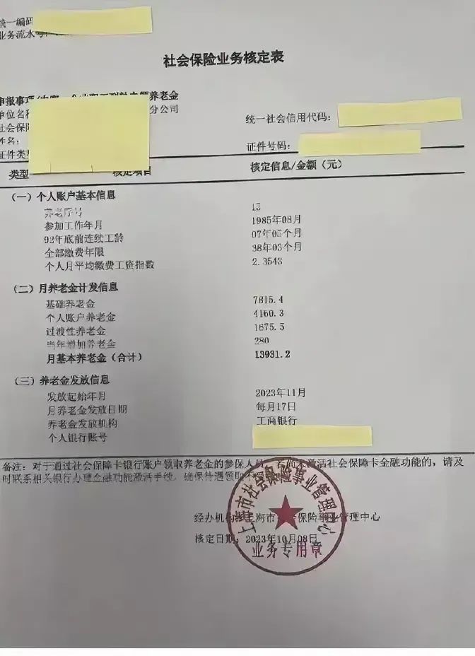 上海一位即将领退休金的朋友,在网上炫出了自己的社会保险业务核定表,人们惊讶的发现他缴纳社保38年,每个月能领到近1.4万的养老金。