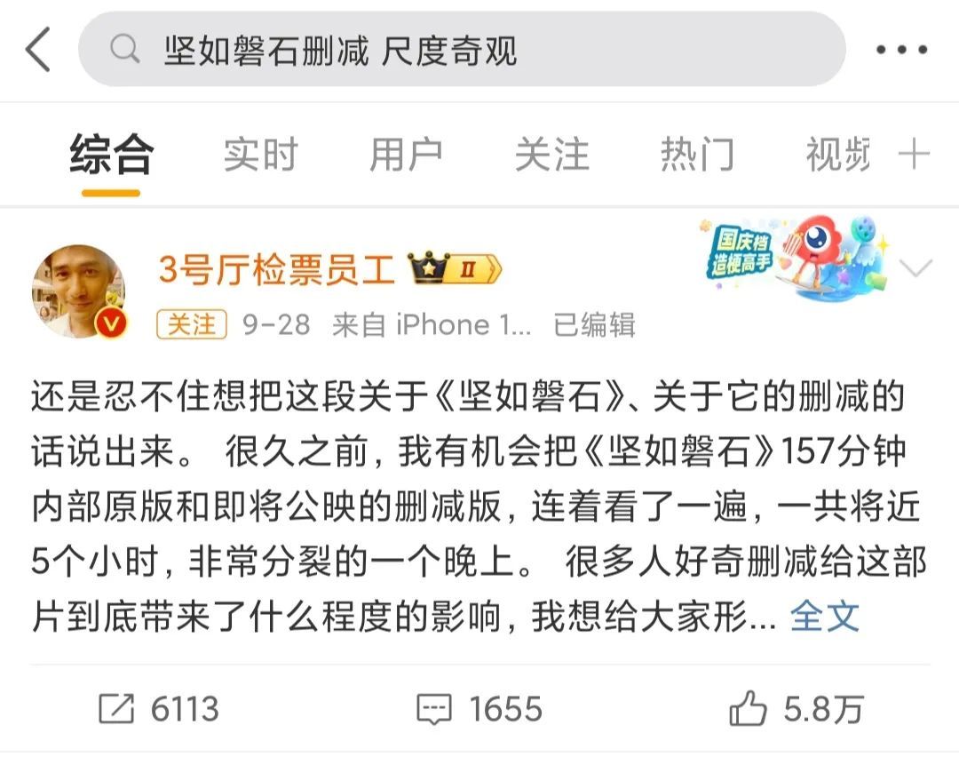 但后续的发酵其实还是没按我的意思走,热搜上因为词条的关系,大家对这部片更期待了,上映后很多人也涌来批评我是在提前用删减为它口碑铺垫好后路。