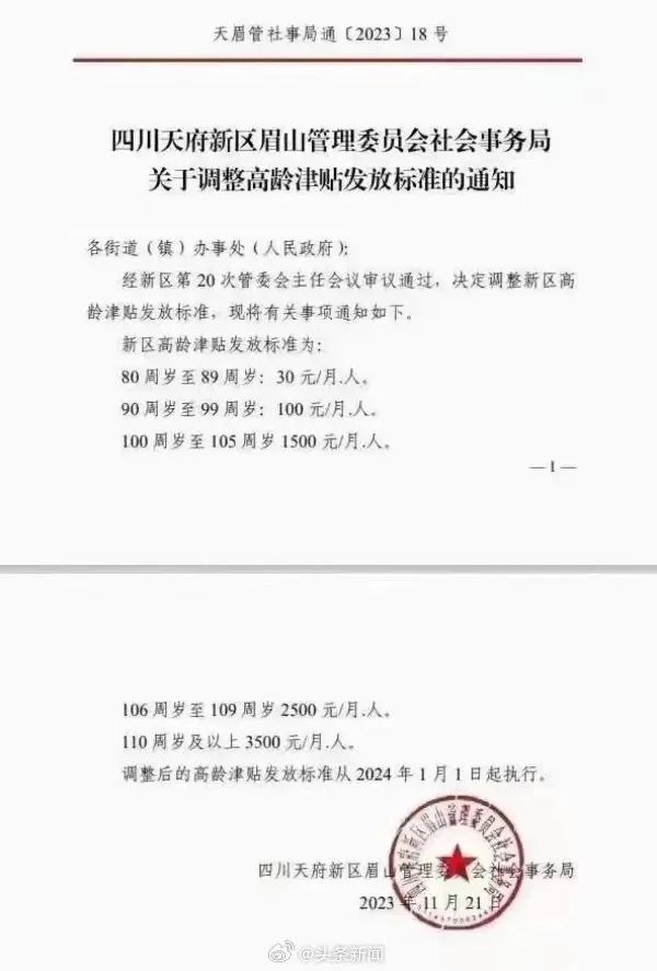 你看四川天府新区眉山高龄津贴发放标准,就经济许多: