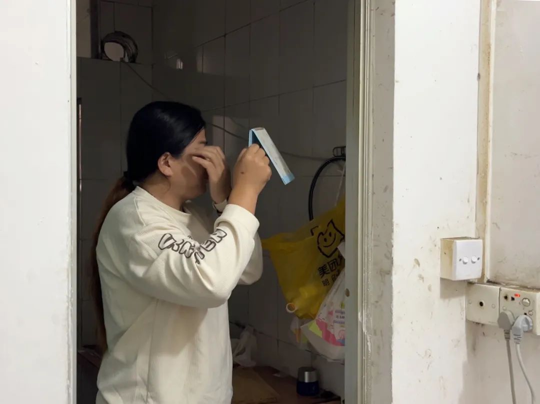 现在,她住在深圳坪山区城中村的一栋握手楼里,一年多前搬来。房间里没有衣柜,衣服叠放在架子上,或者直接挂在窗户的防护栏外。卫生间的地上摆放着她的洗漱用品——这里就像是一个临时的落脚点。得知要拍视频,她从外卖的塑料袋里,抽出了化妆镜,开始整理自己的头发。