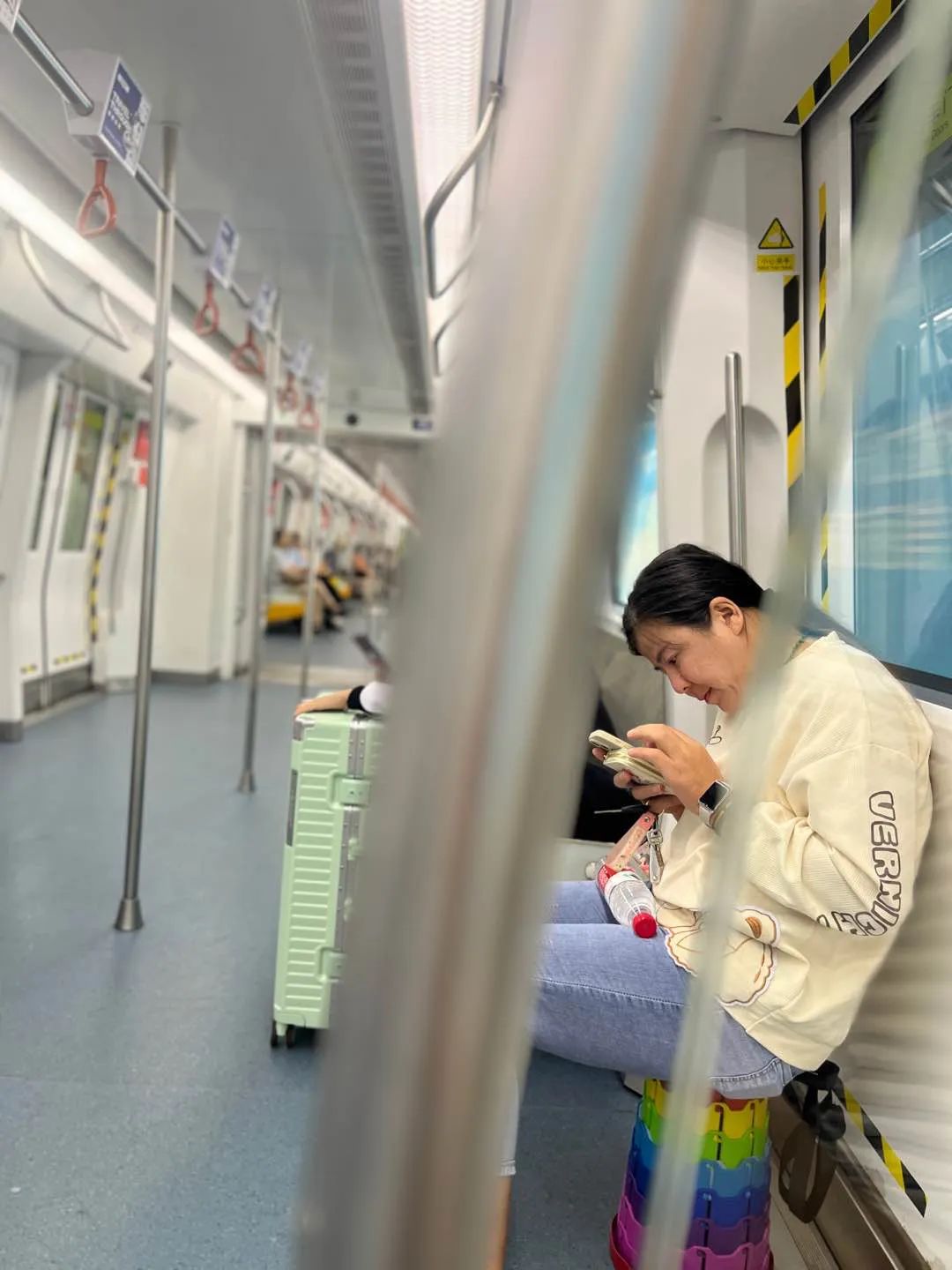 王梓淇坐地铁总拿着自己的凳子,她不想靠近陌生人