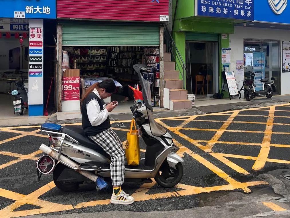 采访期间,她骑着一辆二手电动车,载着我,前往曾经待过的工厂。电动车是她在深圳生活的诸多谋生方式之一——往返地铁口,接驳客人,两公里内10块,有人讲价她就便宜点,8块也行。即便在等人,她也总低着头,很少与周围人目光接触。她的脸部轮廓还有些男性特质,随意扎着一个辫子,浓密的头发让她在人群中很容易被看见。