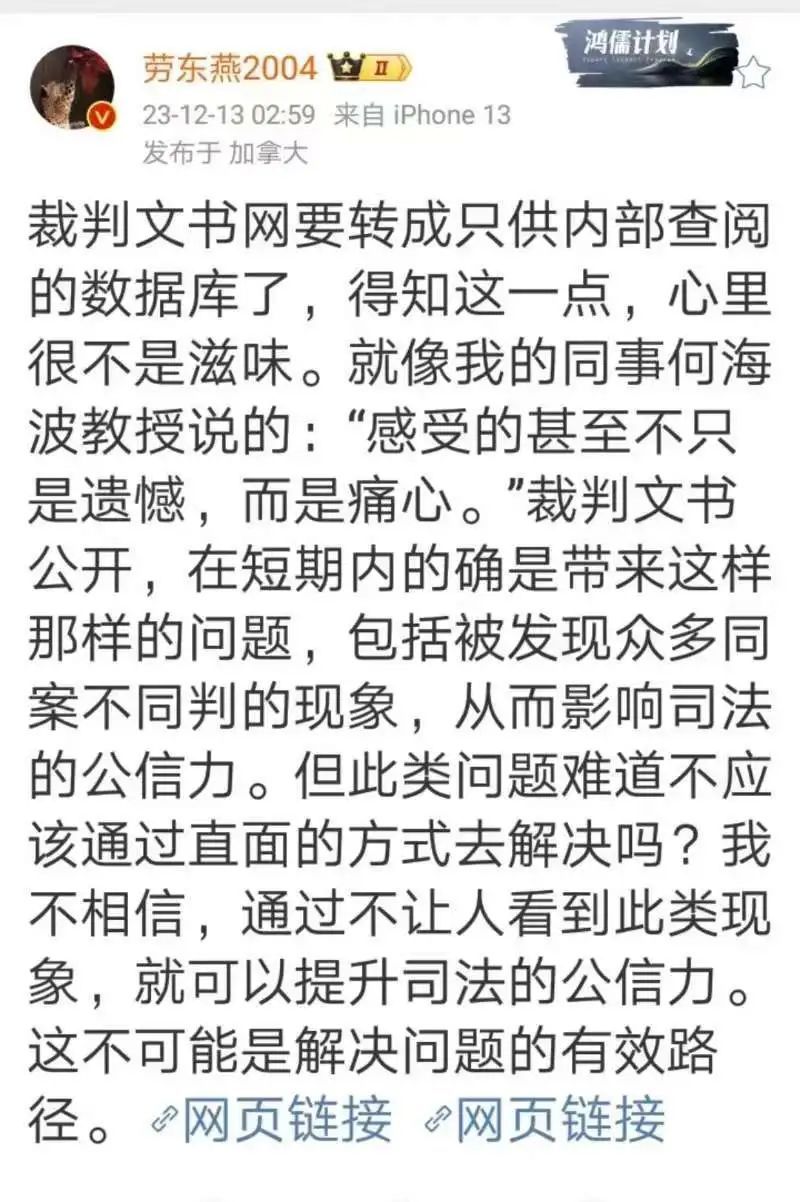 意思就是,被执行了10年的裁判文书上网制度,这道大门将被永久关闭了。取而代之的是,将于2024年1月上线运行的“全国法院裁判文书库”,仅供法院人士在内部专网检索裁判文书。律师、法学研究者以及更广泛的社会公众无法查阅。