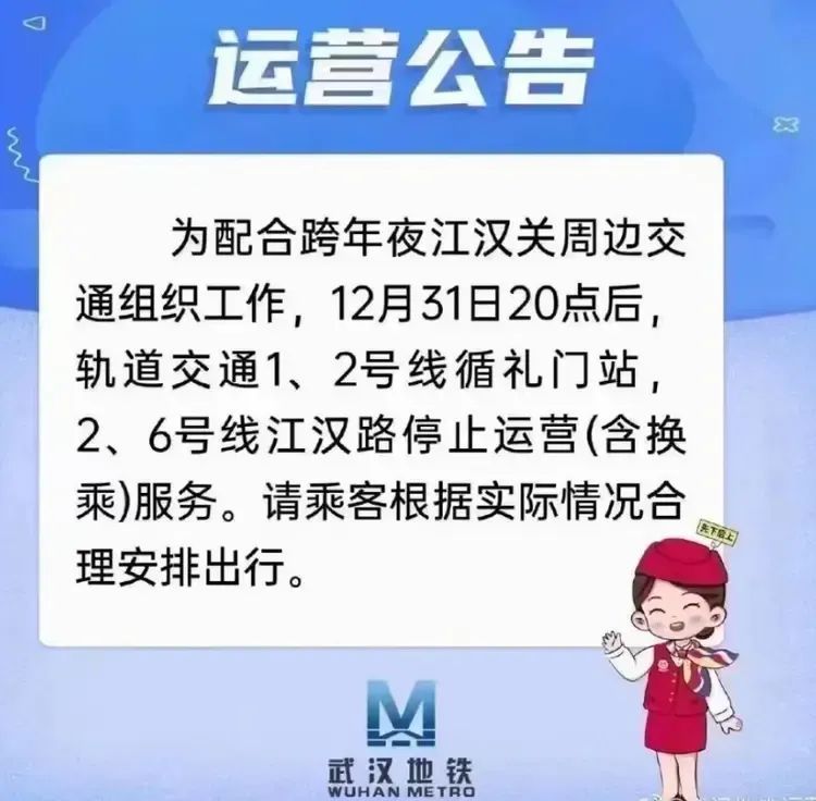 武汉也没有跨年夜活动了,他们的地铁在经过最热闹的江汉路时,不会停下了。