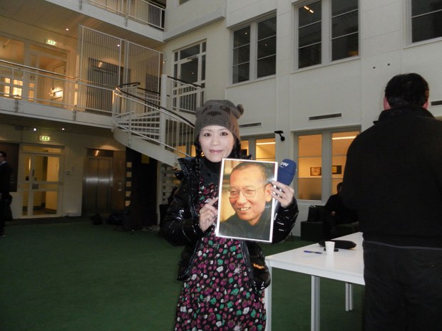 苏雨桐手举刘小波画像,图片来自自由亚洲