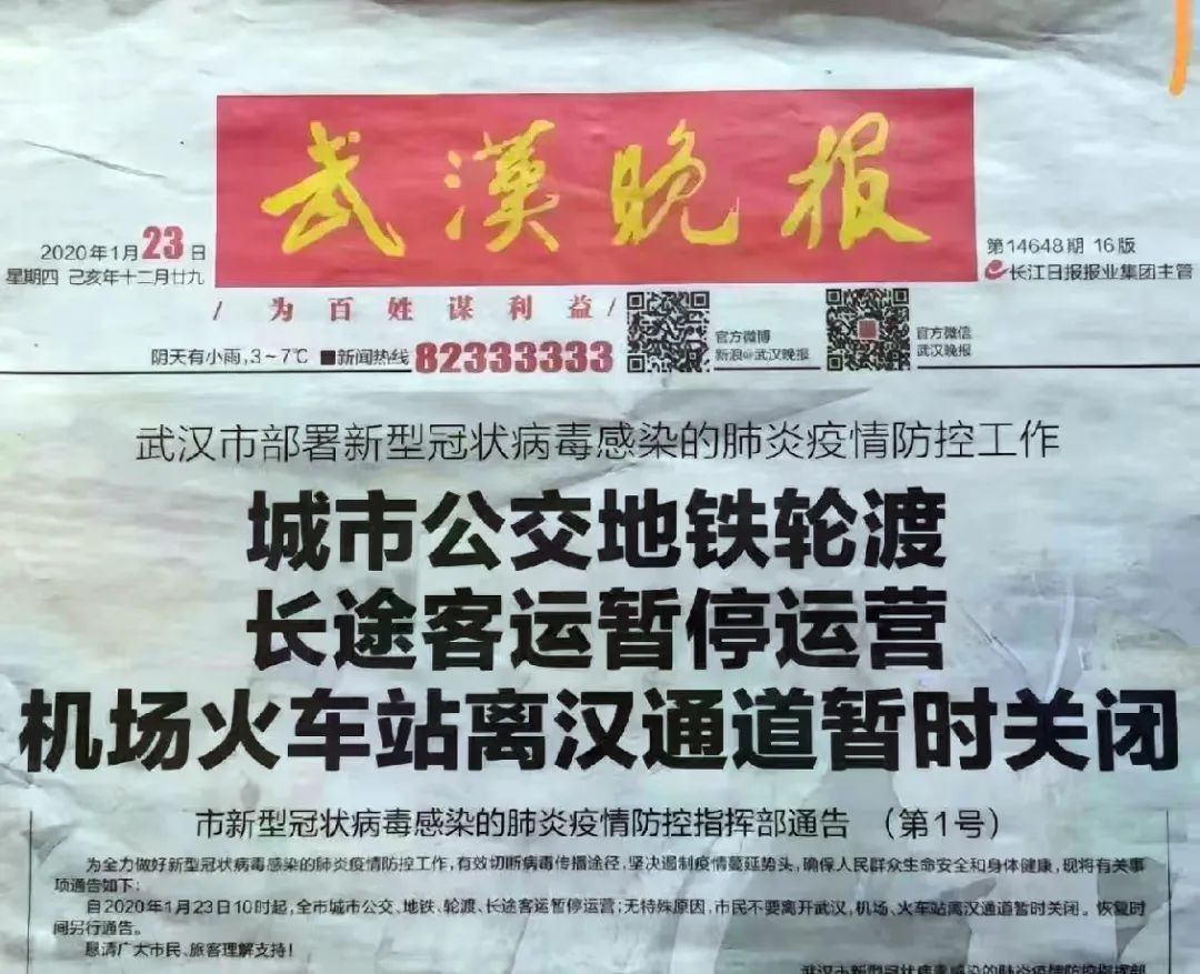 后面的事情,大家都知道了,1月23日凌晨,武汉市新型冠状病毒感染的肺炎疫情防控指挥部发布1号通告称:各离汉通道暂时关闭,武汉正式封城。