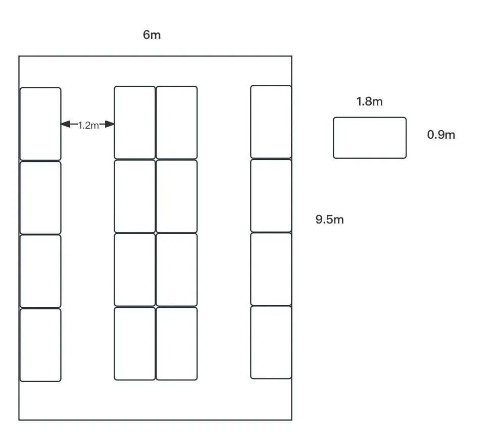 那么,一间宿舍住32个孩子到底有多挤呢?我试着画一幅草图估算了一下: