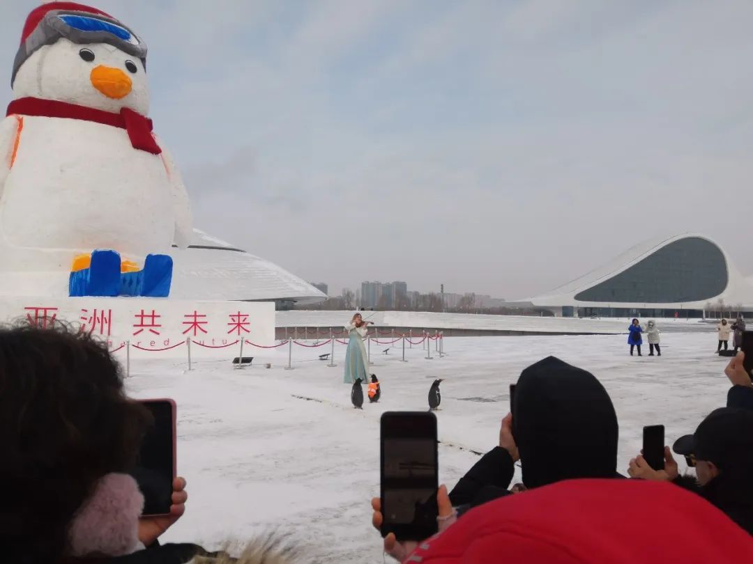 2019年12月,哈尔滨大剧院请来了俄罗斯国家芭蕾舞团表演《天鹅湖》。极地公园和大剧院联合策划,让芭蕾舞者和企鹅在大剧院门前共舞。
