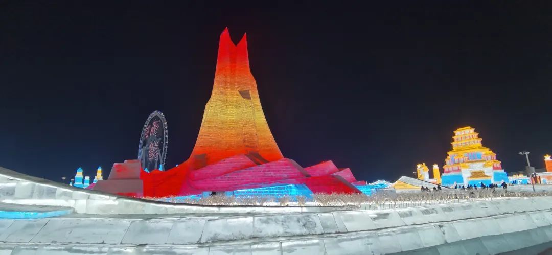 验收阶段,冰雪大世界43米高的主塔在10天内建成,总长100米的太阳岛主塑,由80余名雕刻师用时14天完成。一万多名工人耗时15天打造的冰雪大世界,园区面积最终达到81.66万平方米,打破了吉尼斯世界纪录,成为“世界最大的冰雪主题乐园”。
