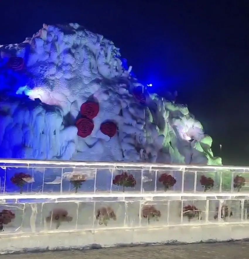 与爱情主题挂钩,别的区有过成功先例。1月初,道外区的冰玫瑰墙新晋为网红打卡地。一束束红玫瑰镶嵌在晶莹剔透的立方体中,定格在最鲜艳明丽的状态,寓意“玫瑰永不凋零,我的爱永远热烈”,得到网友盛赞,“好美好浪漫”。