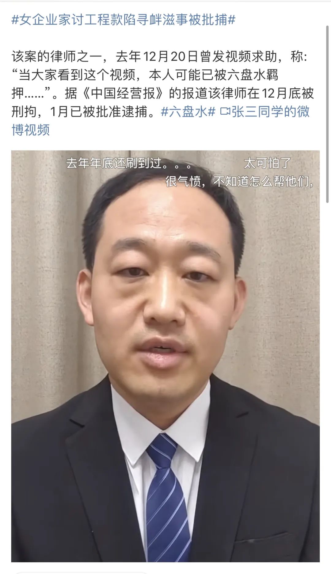 没想到现在还能看到此事的后续,不但律师进去了,女企业家也进去了。