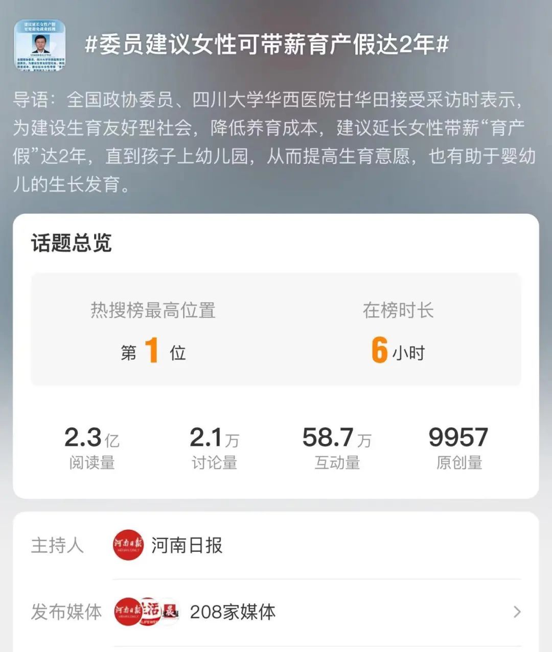 当然,不管怎么说,“2年带薪育产假”都是一个挺扯的建议,如果真的实施,除非国家掏钱补贴,否则很容易导致严重的女性就业歧视。在目前的环境下,这个建议肯定是脱离实际的,被骂并不冤。