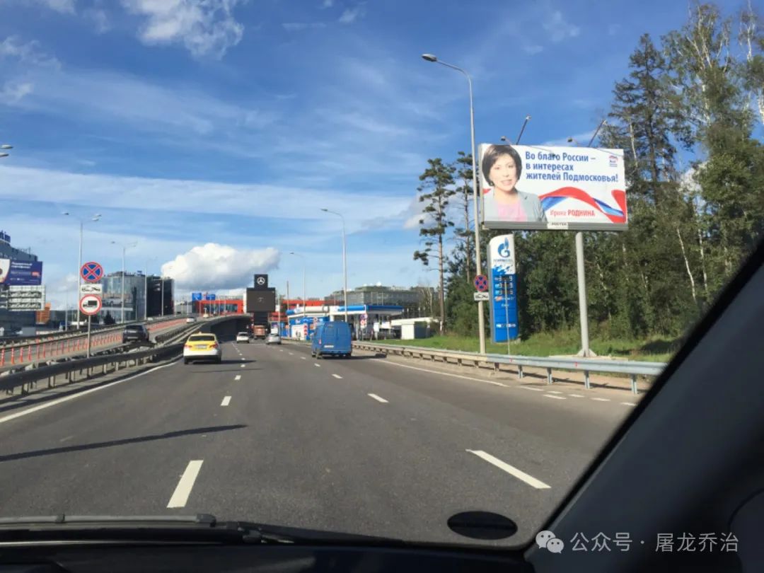 在如大海捞针般地仔细观察后,我总算找到了其它政党的竞选广告牌:俄共宣传板2块、“公正俄罗斯党”1块、“自由民主党”1块。除了统俄党,当时能进入议会的也就这三个政党。