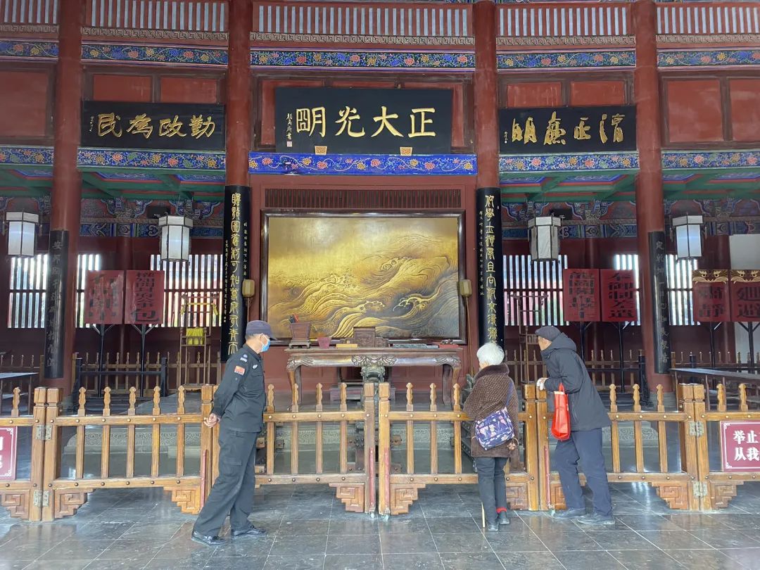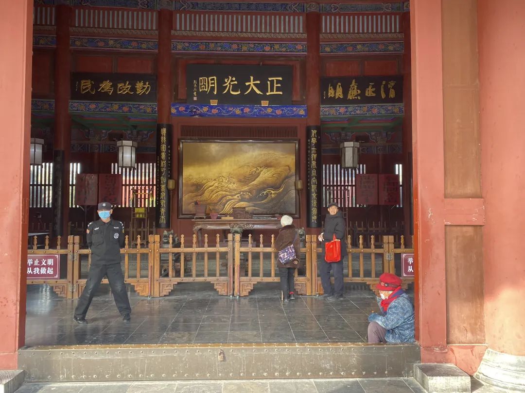 我在现场亲眼所见,这位保安全程紧盯每一位稍有嫌疑的游客,会阻止任何试图在堂前下跪的人,无论你是单纯的祈福还是准备拍视频鸣冤,统统不许下跪。