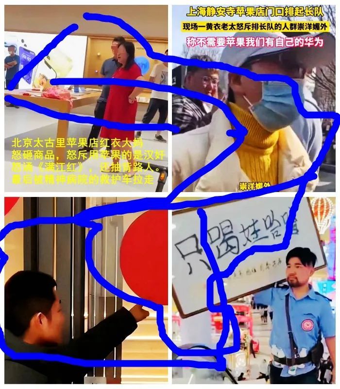 尤其是“北京苹果店红衣大妈、上海苹果店华为奶奶、南京商场红圈志士、不知何处的娃哈哈扛鼎猛男”这“嗳啯F4”出来后,我更加庆幸我从不去看这些不该看的东西。而且我觉得他们伵配得挺好的,两男两女,男女平等。