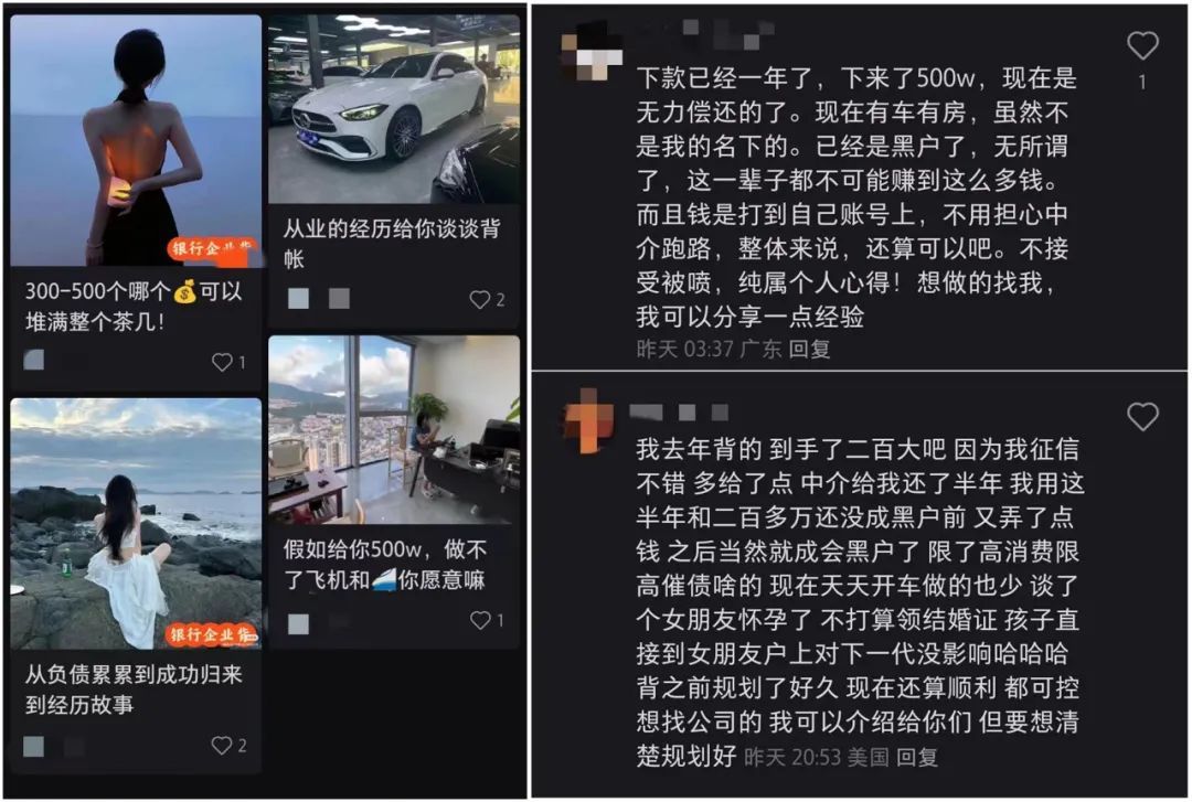 在社交媒体上,“职业背债人”被包装成了“半年收入百万”的新职业——甚至有些机构还承诺“只要3-6个月时间,就可以拿到数百万的报酬”。
