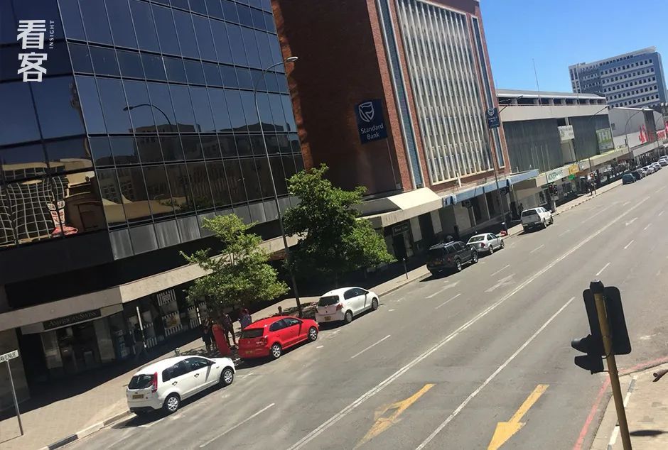 纳米比亚首都的中国城,受到连带的影响,生意也不如从前。月中的午后,偶尔风沙扬起,好像客人们也被大风吹走了,有店主干脆将卷帘防盗门拉下一半,跑去其他店铺里聊天。