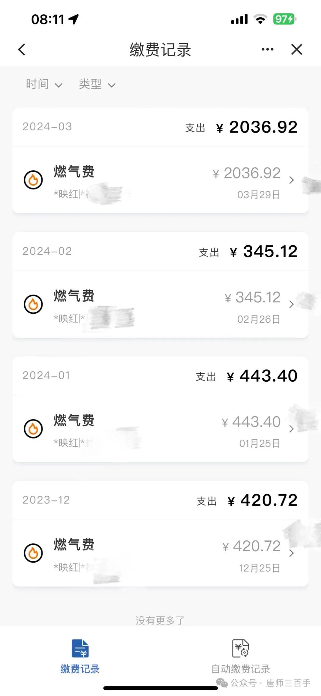 最近一次3月份缴纳的是2月份的燃气费,竟然在三四百元的基础上暴涨了5倍!!