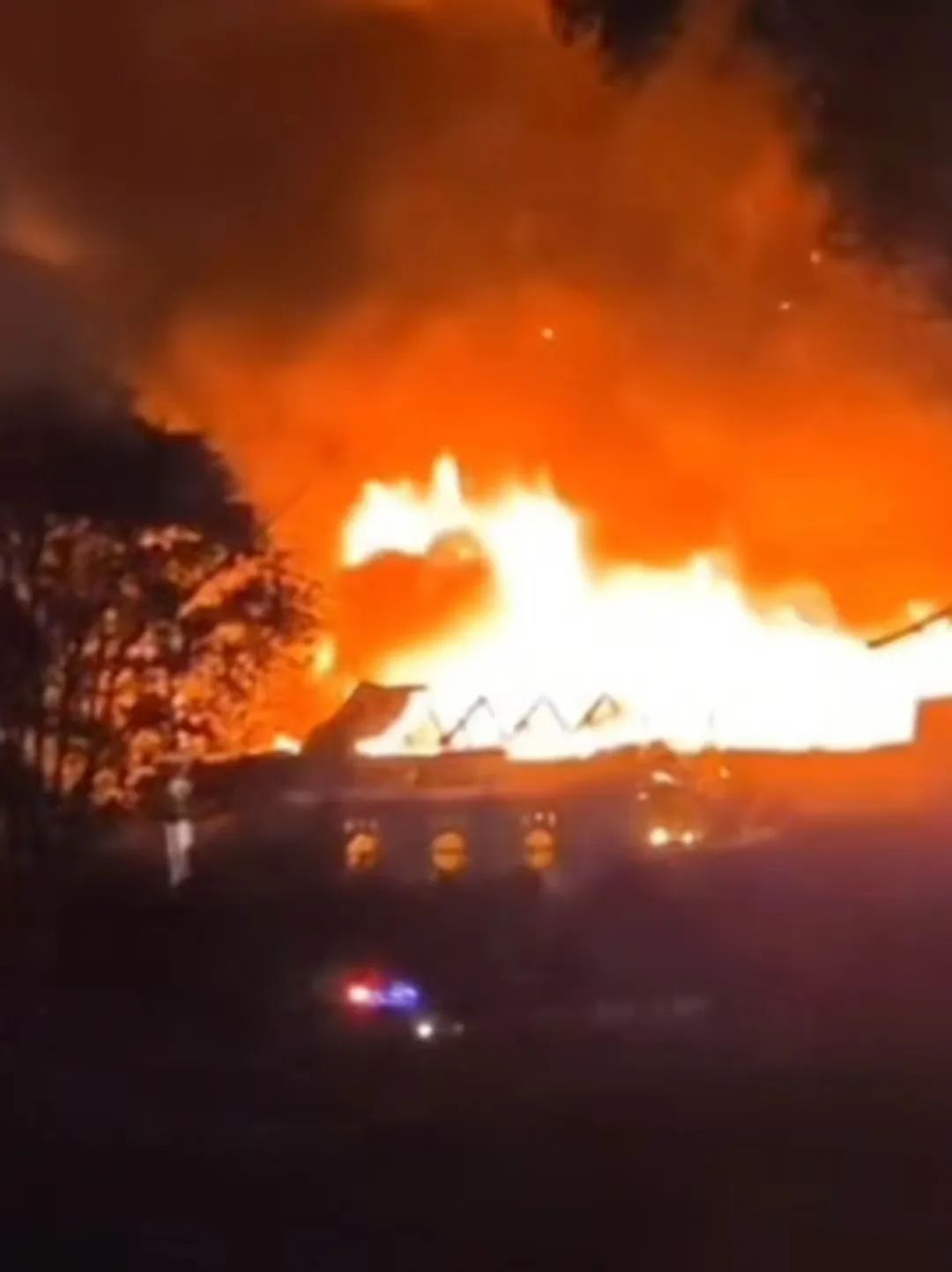 网友拍摄的大礼堂失火现场,火光冲天。受访者供图
